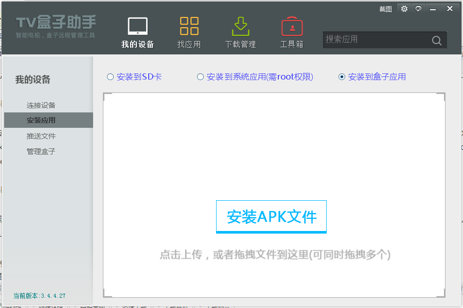 下载一个TV盒子助手(点此下载),然后连接一下海尔电视就可以了,不过需要用到电脑,还得让电脑和海尔电视在同一局域网下,也就同一个器下。