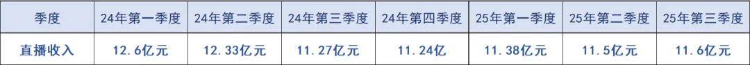 直至2025年第三季度,当季直播营收首次同比增长,为2.6%,共11.6亿元。