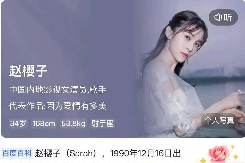 这样的描述让网友难以猜测,1990年出生的赵樱子,其男友应是2002年出生的新生代艺人,具体身份成谜。