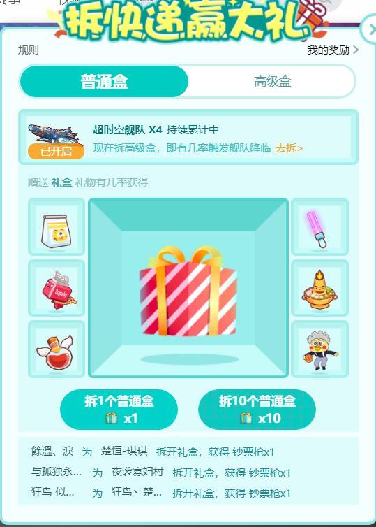 而对于主播以上的此种行为,网友们很好奇虎牙方面会做出怎样的处理态度。却没曾想,虎牙竟是推出的一款名为拆快递的抽奖活动。参与方式是用户通过送出的礼盒即可参与。而送出礼盒的数量决定着快递品种:一次性送出1个礼盒可以拆1次普通盒, 一次性送出20个以上礼盒可以拆1次高级盒。