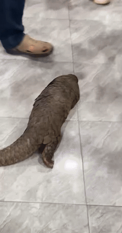 没收后,这四只穿山甲被送往当地一家野生动物救助中心。其中三只身体状况相对稳定,没有明显外伤;但剩下的一只情况令人揪心。被发现时它一直蜷缩着,一动不动,保持着穿山甲面对危险时最本能的姿态。穿山甲几乎没有攻击性,遇到危险时只会原地缩成一个球,这能让绝大多数的捕食者无从下手——但恰恰让盗猎者将它们轻松装走、运输、转卖。