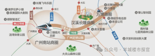广州足球公园所在的汉溪大道被誉为“黄金十公里走廊”,这里汇聚了希音、广汽埃安、YY、虎牙直播、微软、李锦记、小鹏汽车等超过1700家高新企业,形成了强大的总部效应。随着广州公布“5+2+4+22”商圈规划,番禺区独揽两大国际商圈——长隆-万博商圈和枢纽型国际商圈广州南站商圈,这使得广州足球公园成为了连接南站与万博的重要节点,进一步完善了板块内的体育综合体配套,促进了整个区域的发展。