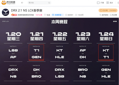 1月24日16时,虎牙独播英雄联盟韩国冠军联赛春季赛常规赛W2D5继续火热开战,首场KT与T1打响S11赛季通讯社一番战,近期表现并不如意的T1能否击败老对手终结连败;第二场GEN迎战HLE,状态逐渐升温的Deft能否率领HLE终结GEN三连胜。虎牙直播除了独家官方直播间外,更有精彩的职业选手和明星主播OB视角,请观众准时锁定虎牙直播间660001,一起见证不一样的LCK。